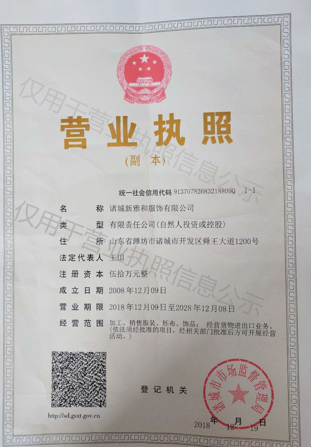 諸城新雅和服飾有限公司是一家擁有自營(yíng)進(jìn)出口權(quán)、集貿(mào)工一體的現(xiàn)代化針織服裝加工出口企業(yè)。公司座落在諸城開(kāi)發(fā)區(qū)橫四路北206國(guó)道以東。公司現(xiàn)有現(xiàn)代化日本進(jìn)口電腦縫制設(shè)備200多臺(tái)套,職工300人,年出口創(chuàng)匯1000萬(wàn)美元。公司擁有一個(gè)團(tuán)結(jié)務(wù)實(shí)、業(yè)務(wù)嫻熟、反應(yīng)迅速、年輕化、現(xiàn)代化的管理團(tuán)隊(duì)。